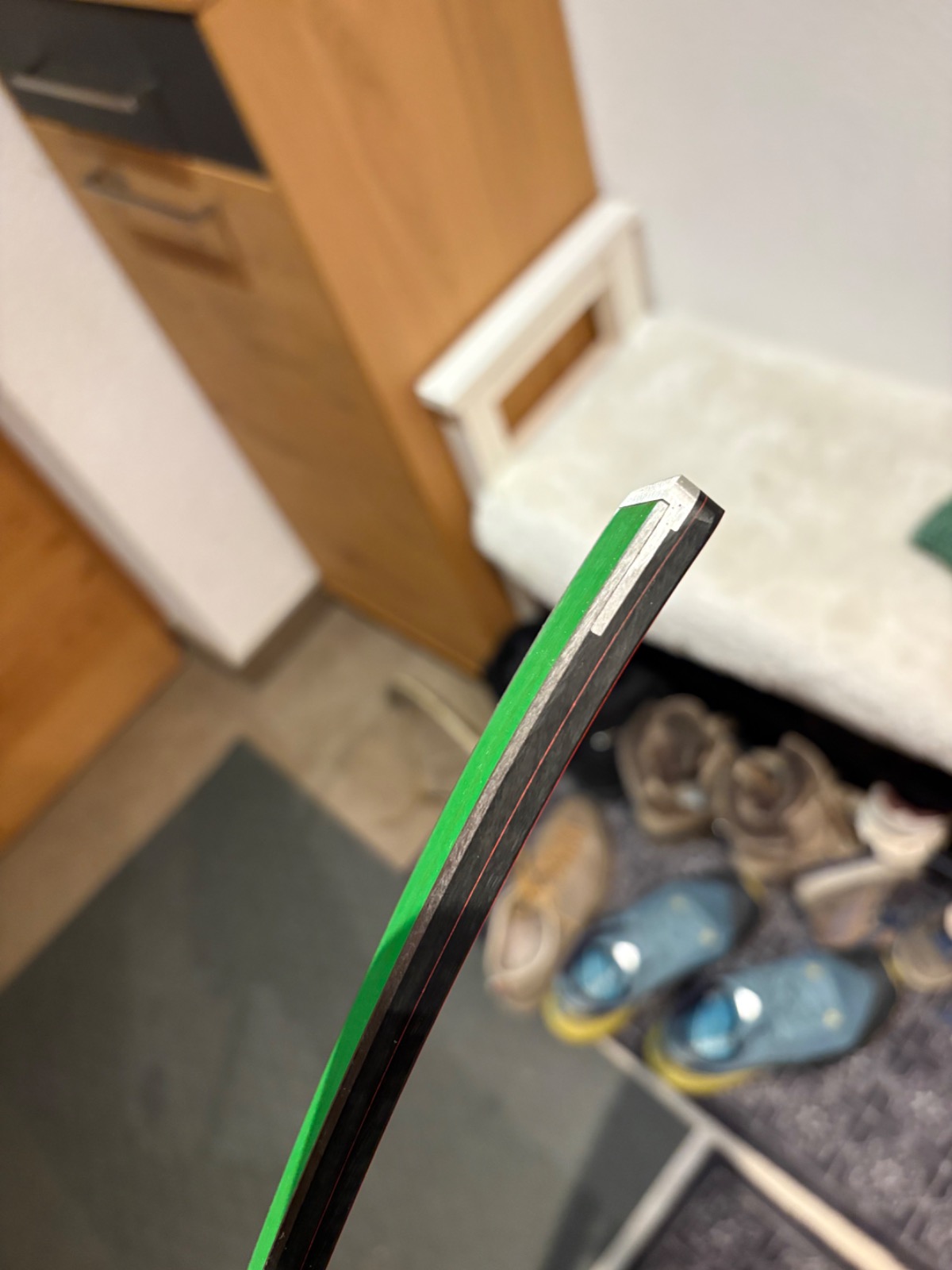 Die Kompaktplatten habe ich mit PUR geklebt und den rest mit epoxid 😎 zwischen den skikanten habe ich noch ein glasfaserband mit eingearbeitet für den Versatz und Stabilität 😉